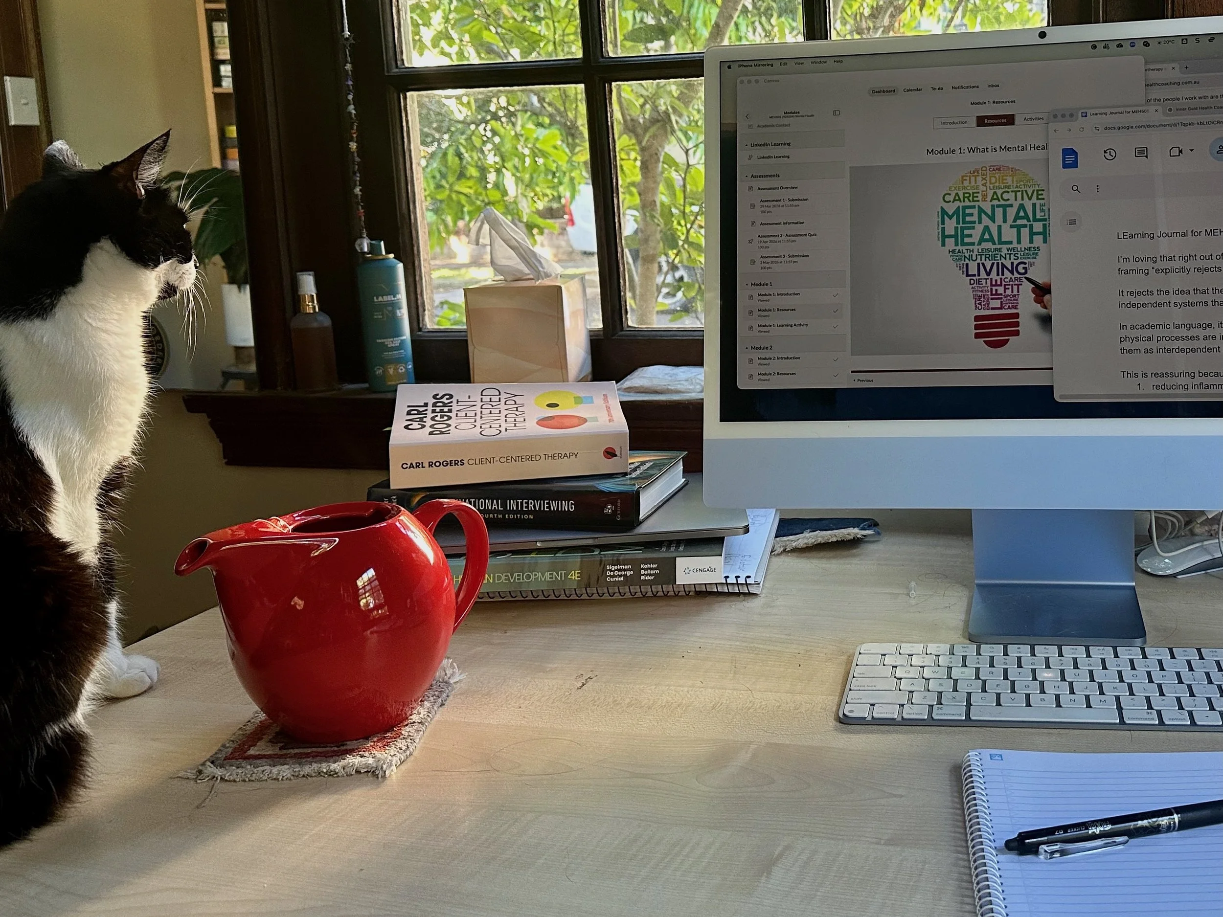 It’s my third and final trimester of the Graduate Diploma of Counselling at Torrens University, and I’m genuinely excited about it. I didn’t expect to be saying that at this stage of life, forty years after I was last an undergraduate in a completely different field.